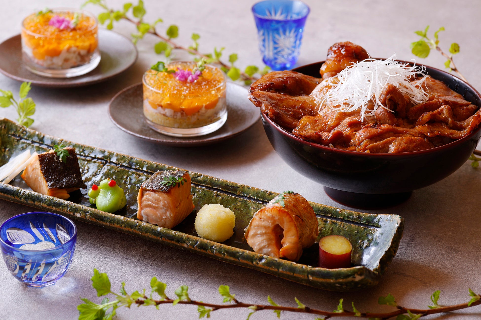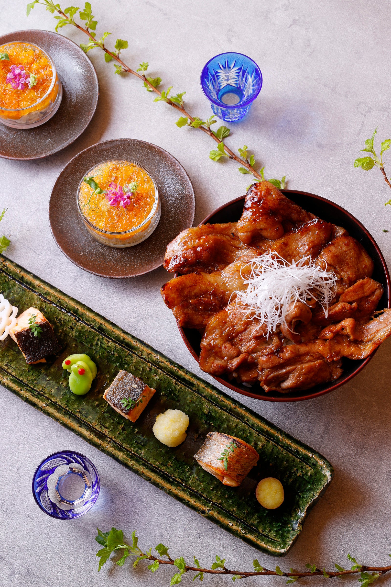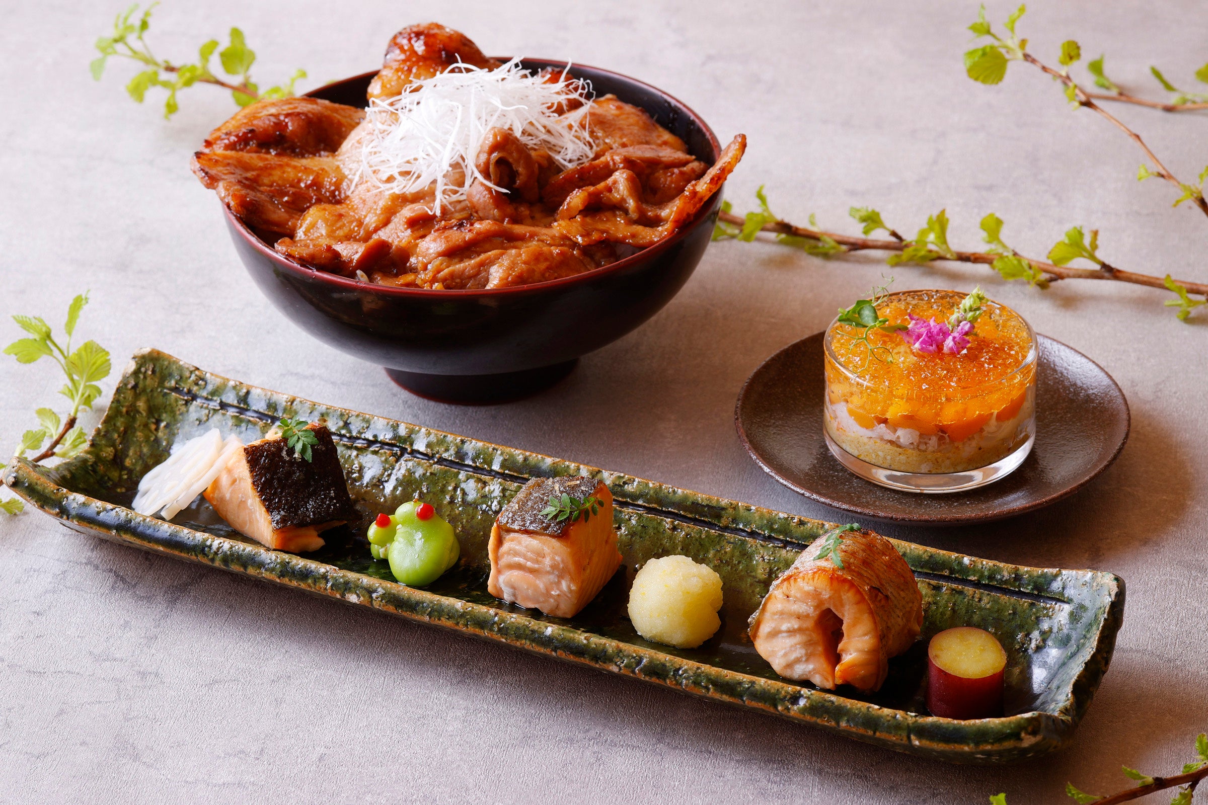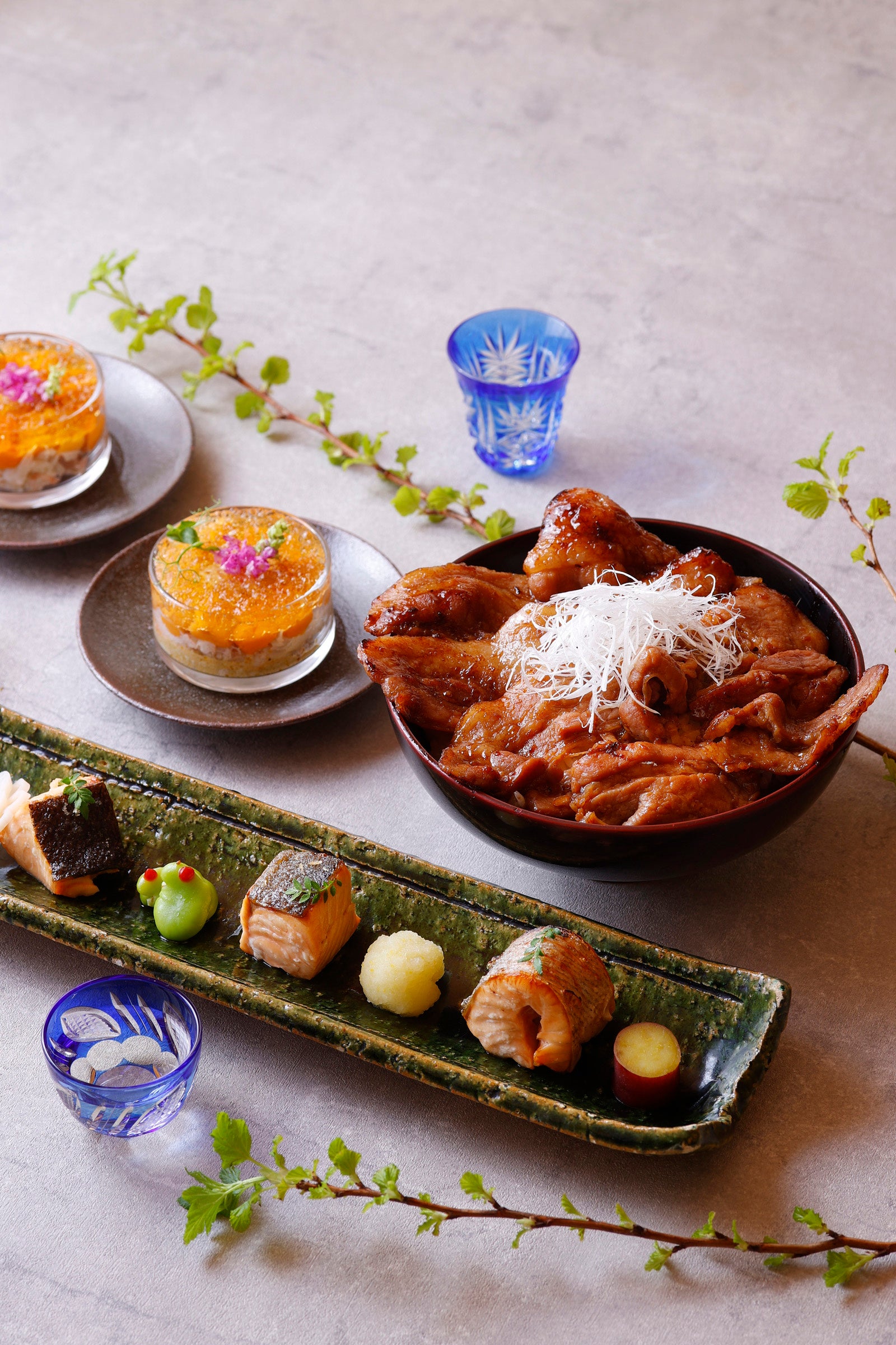 四季折々の上質な食材を惜しみなくつかい職人の技で繊細に仕立て上げる日本料理「舞」では、上質な豚肉の産地で知られる北海道十勝地方、帯広市で生まれた郷土料理「豚丼」を舞ならではの料理に仕上げた『北海道豚丼』をご用意します。広大な大地が育んだ上質な北海道産豚肉の中からさらに料理長が厳選したこだわりの豚肉を、舞特製の甘辛いタレにからめ丁寧に炭火で焼き上げます。ジューシーで肉厚なバラとロースの両方をふんだんに載せた香ばしい豚丼は、ランチ限定、数量限定でご提供いたします。