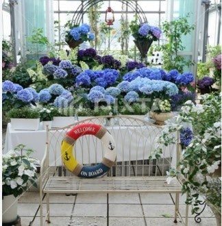 庭園内に今回のテーマ「~みらいへ~地球を守る Earthガーデン」を描いた地球型のプレートを、ベンチとともにフォトスポットとして設置します。ブルーのあじさいに囲まれながら、写真撮影ができます。