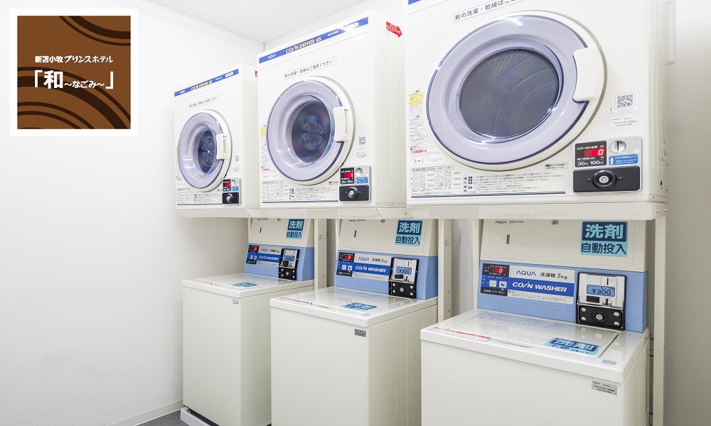 なごみには、長期滞在には欠かせないコインランドリーや、お風呂上りに寛げる文庫スペースなどの設備も完備。もちろん客室内はWi-Fi無料!