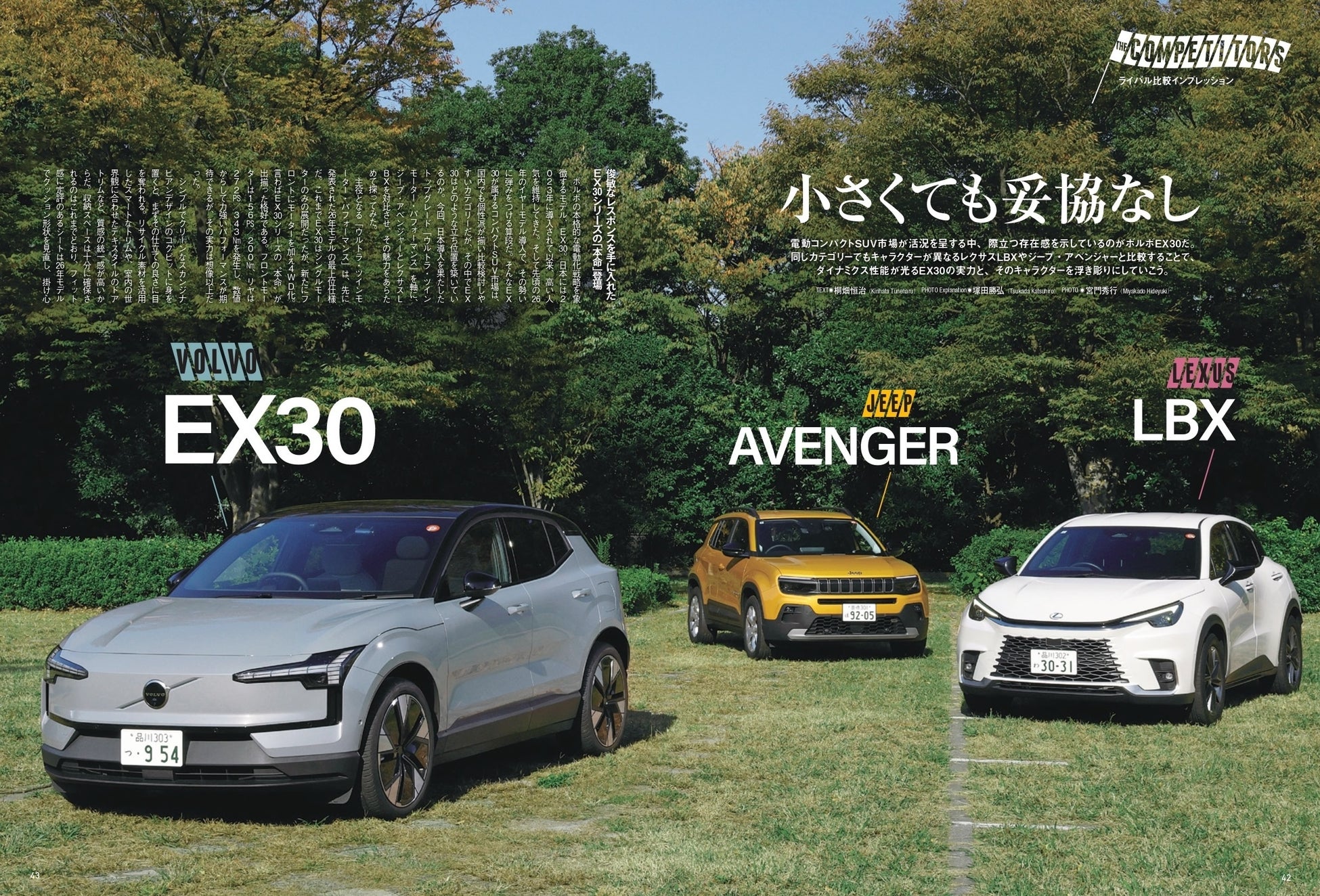 EX30シリーズのライバルとして取り上げるのは、同じような価格帯のプレミアムコンパクト、レクサスLBX。そして同じSUVのBセグBEVとして、ジープ・アベンジャーの2台です。走り、室内スペースなど、それぞれの特徴を紐解きます。