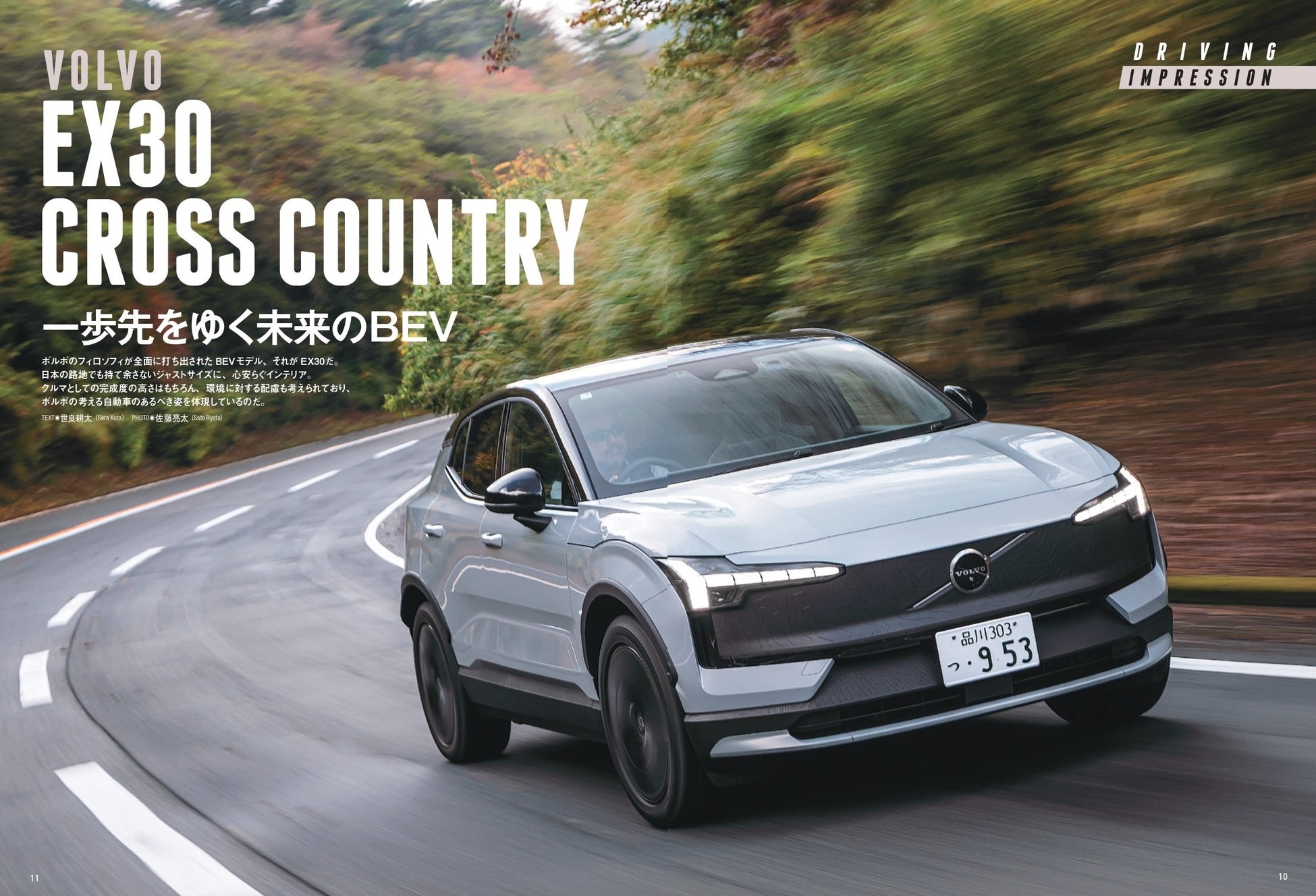 ドライビングインプレッションは全部で3本。アウトドアテイストを盛り込んだ、EX30クロスカントリーに、前後2モーターを積みEX30で最もスポーティなウルトラ・ツインモーター・パフォーマンス。そして最も手頃なプラス・シングルモーター。それぞれの乗り味の違いをお届けします。