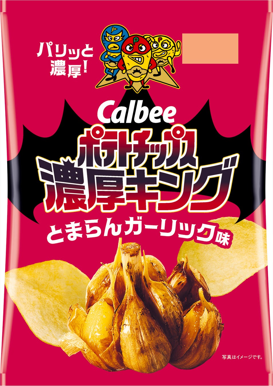 「カルビー ポテトチップス」公式ライバル商品から新フレーバーが登場!ガーリックの香ばしい風味とかつおの旨みがクセになる!『ポテトチップス濃厚キング とまらんガーリック味』