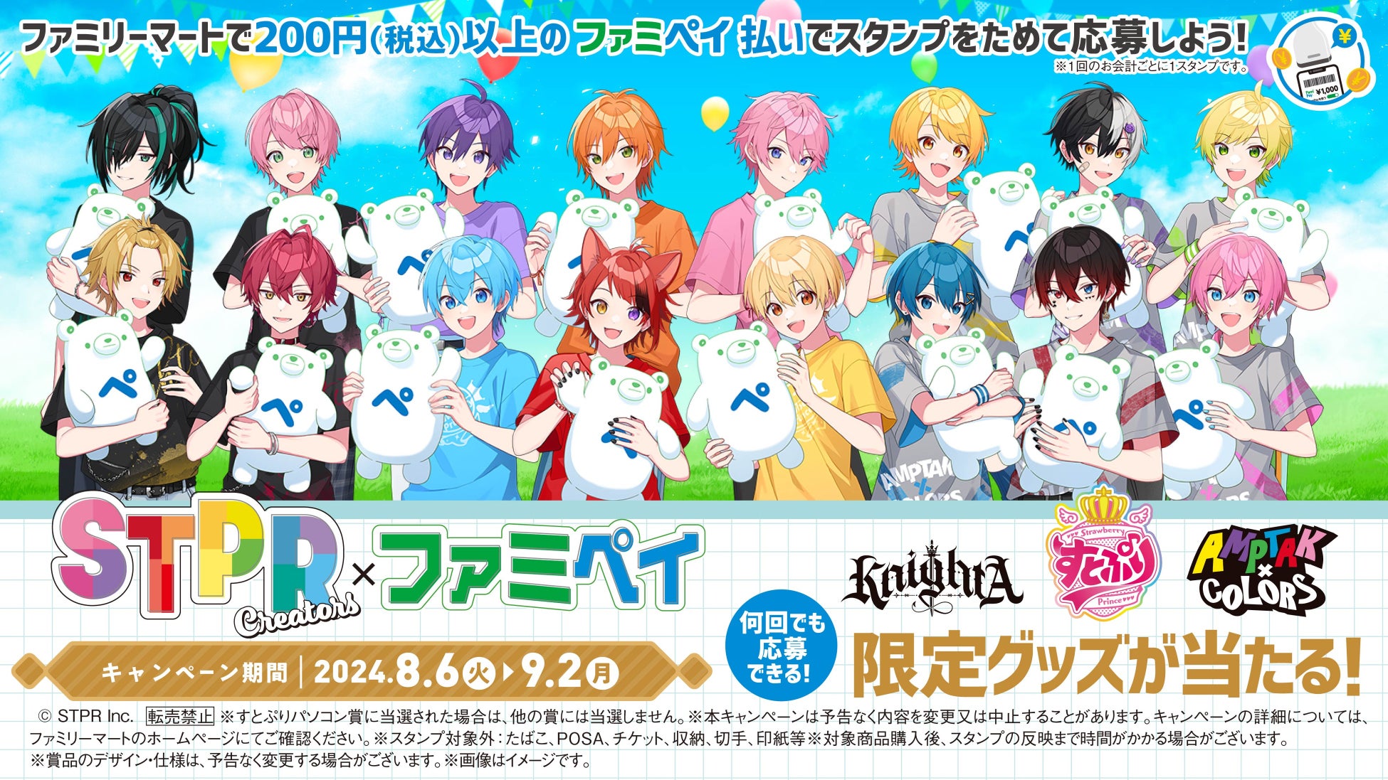 史上初!STPR所属の2.5次元歌い手アイドルグループ3組がファミマに大集合!すとぷり・Knight A - 騎士A -・AMPTAKxCOLORSとのコラボキャンペーンが8月6日(火)よりスタート