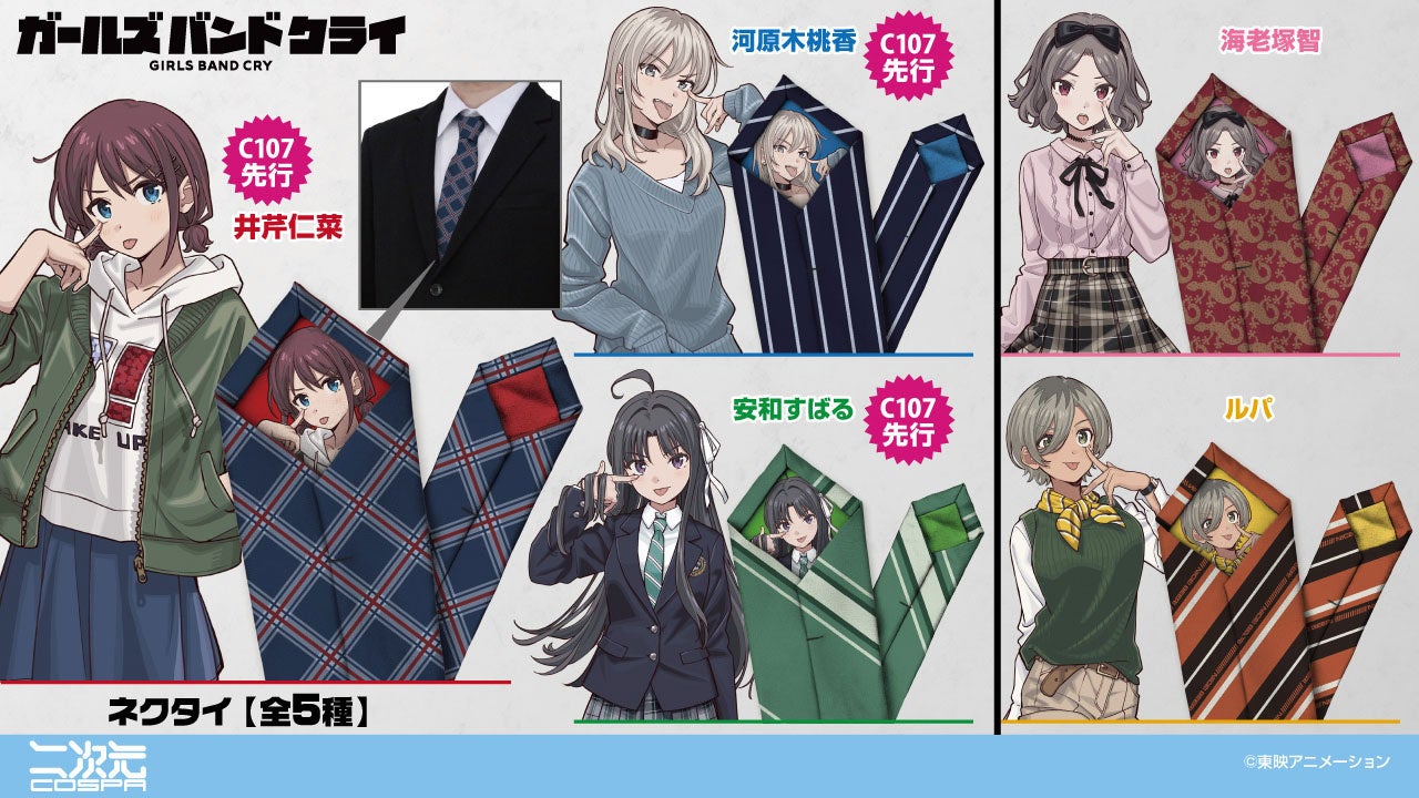 アニメ『ガールズバンドクライ』仁菜たちの「ネクタイ」やトゲナシトゲアリ5人の「オールプリントTシャツ」など新グッズ登場!一部グッズは《コミケ107》ジーストアブース先行販売も!【株式会社コスパ】