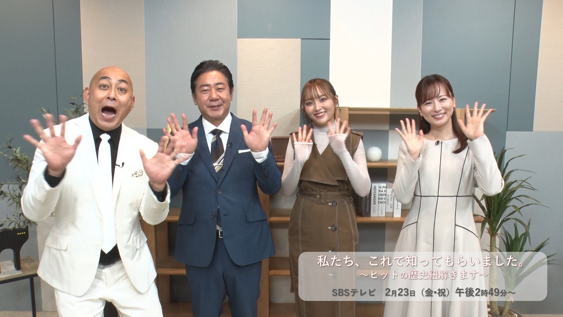 プレスリリース配信サービス「PR TIMES」等を運営する株式会社PR TIMES(東京都港区、代表取締役:山口拓己、東証プライム:3922)は、当社がスポンサー提供するバラエティ番組「私たち、これで知ってもらいました。~ヒットの歴史紐解きます~」が、2024年2月23日(金・祝) 午後2時49分~午後3時19分にSBSテレビで放送されることをお知らせいたします。