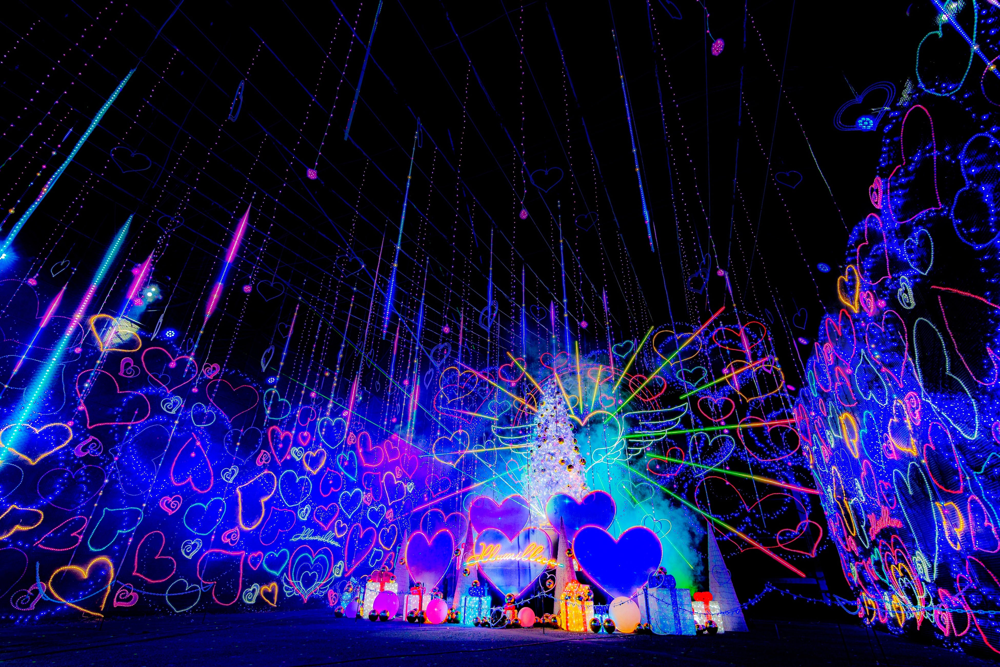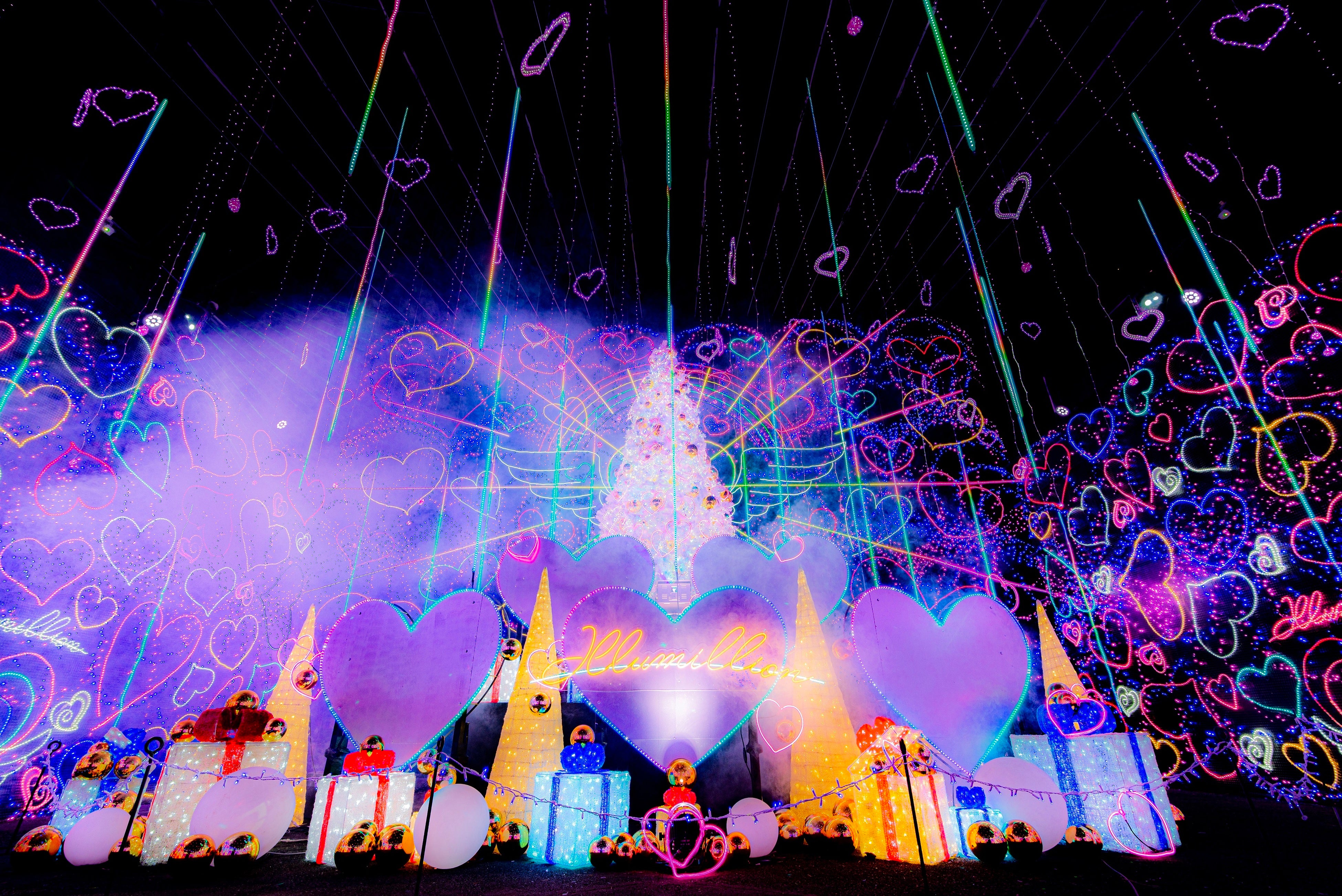 11月12日(土)より開催中の、関東最大級600万球「さがみ湖イルミリオン」に、今年新登場したエリア「ハートフルイルミネーション」では、クリスマスツリーと空間いっぱいにちりばめられたハートのイルミネーションが音楽に連動して光り輝く、エンターテイメントショーを展開し、クリスマスまでの期間、約5分間の特別ショーをお楽しみいただけます。