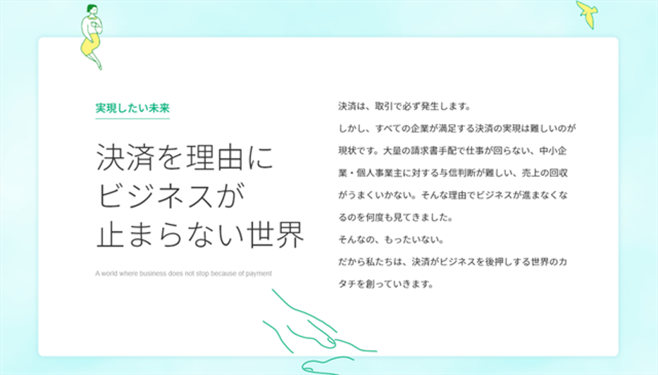 2021年には企業間決済サービスとして累計導入企業数シェアNo.1*を獲得しました。2022年にはサービス開始から10周年を迎え、「Paidらしさ」とは何か?を改めて追及し、コンセプトをまとめたブランドページを公開。「Paid」が実現したい未来は、「決済を理由にビジネスが止まらない世界」と定めました。