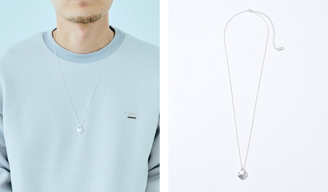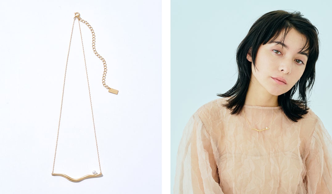 滑らかなラインにパールをあしらったネックレスは、通常より長いアジャスターチェーンが特徴。鎖骨の上に沿わせたりシャツの襟下に忍ばせたりと、印象を変えて楽しめます。