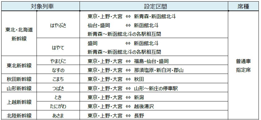 ※本商品は列車・区間・席数限定の商品で、えきねっとで発売する「新幹線eチケットサービス」限定で設定します。こども価格の設定もございます。