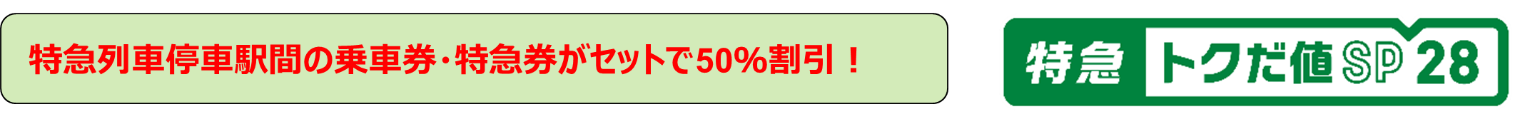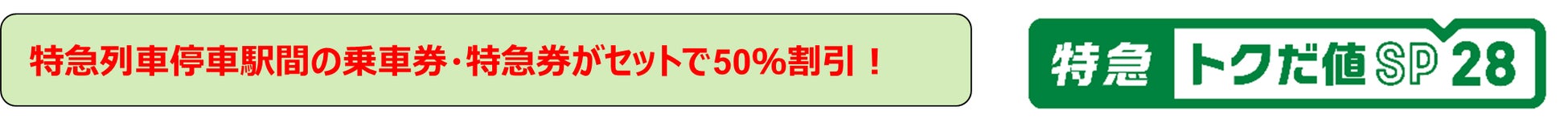 特急トクだ値スペシャル28:特急列車停車駅間の乗車券と特急券がセットで50%割引