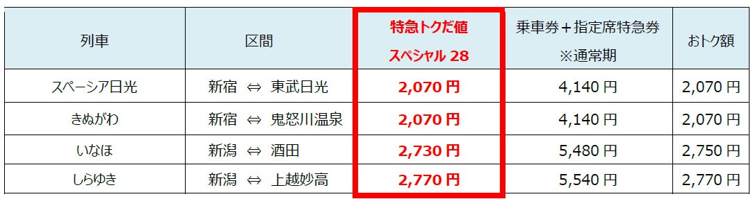 ※本商品は、列車・区間・席数限定の商品で、えきねっとで発売する「特急トクだ値」限定で設定します。こども価格の設定もございます。