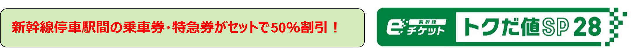 新幹線eチケット(トクだ値スペシャル28):新幹線停車駅間の乗車券と特急券がセットで50%割引
