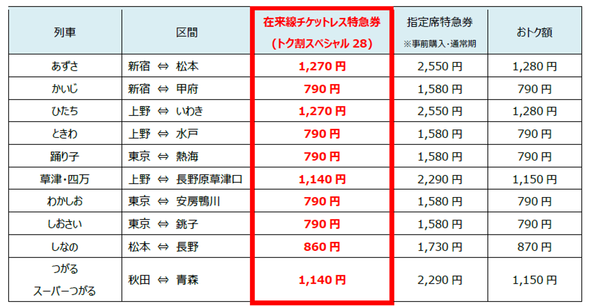 ・在来線チケットレス特急券(トク割スペシャル28)についてはコチラ