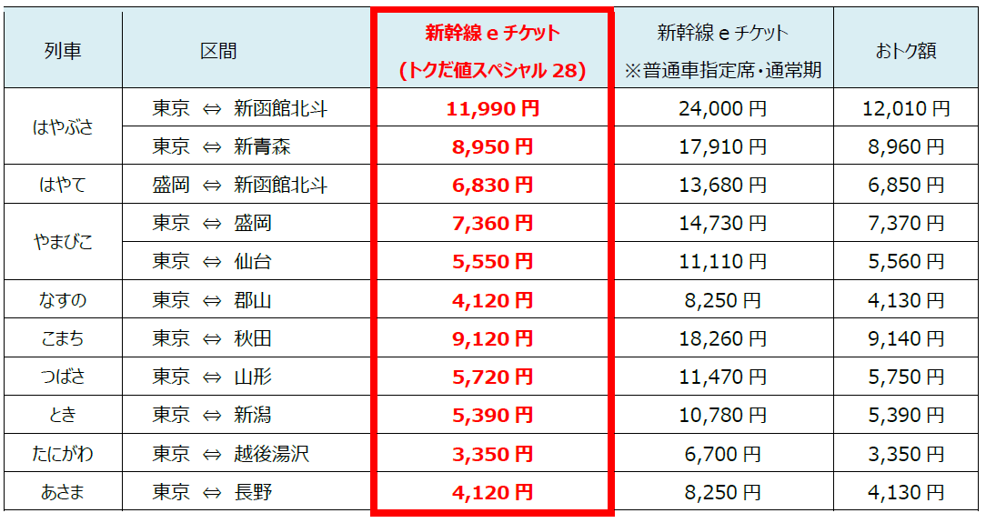 ・新幹線eチケット(トクだ値スペシャル28)についてはコチラ