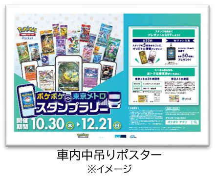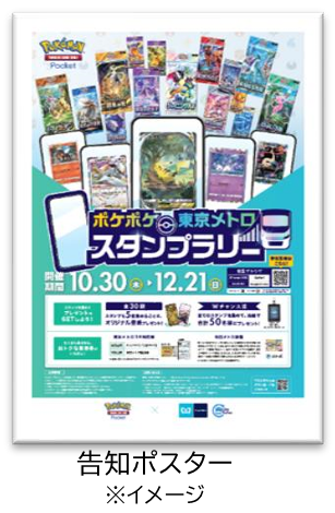 東京地下鉄株式会社(本社:東京都台東区、代表取締役社長:小坂 彰洋、以下「東京メトロ」)は、「『ポケポケ』 東京メトロ スタンプラリー」を2025年10月30日(木)から2025年12月21日(日)まで実施します。