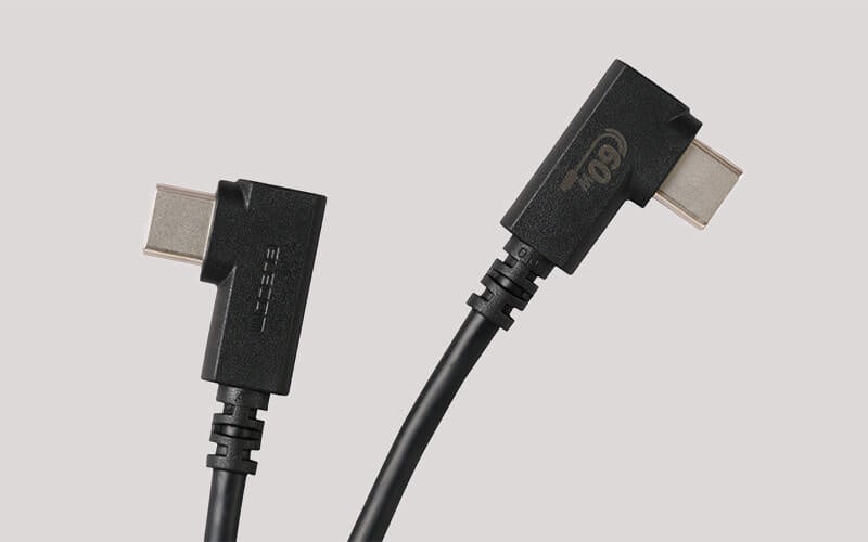両端または片側にUSB Type-CのL字コネクターを採用したUSB2.0ケーブルです。ストレートコネクターに比べ、機器などから飛び出す部分が少なく、コンパクトに扱えます。