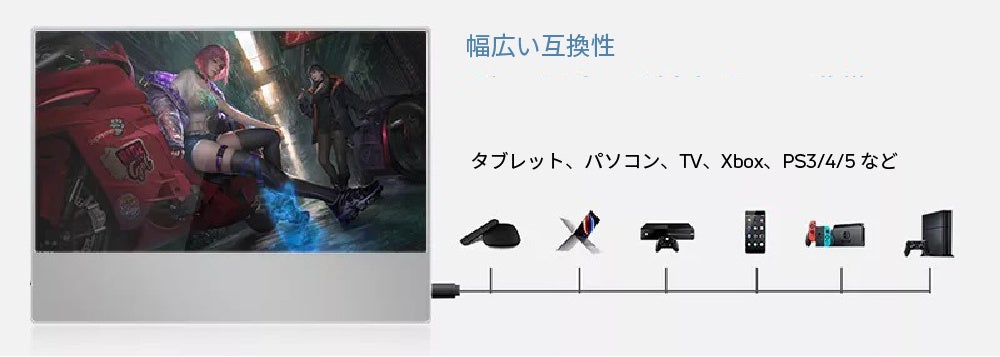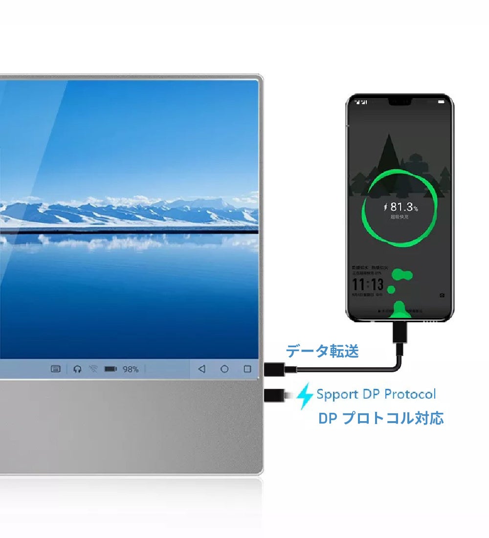※ お使いのデバイスは、HDMI出力、thunderbolt3.0またはUSB3.1 Gen2 Type C DP ALT-MODEに対応し、ビデオ出力およびタッチ用のポータブルモニターに対応する必要があります。デバイスによっては、USB-C充電のみに対応している場合があり、ご使用いただけない場合がございます。