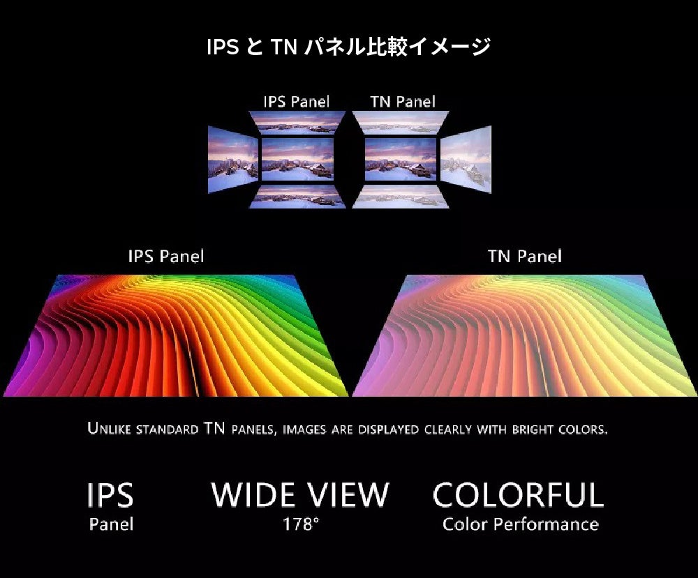 1080P、1920(RGB)×1080、FHD、sRGBの62%、262K(10ビット)