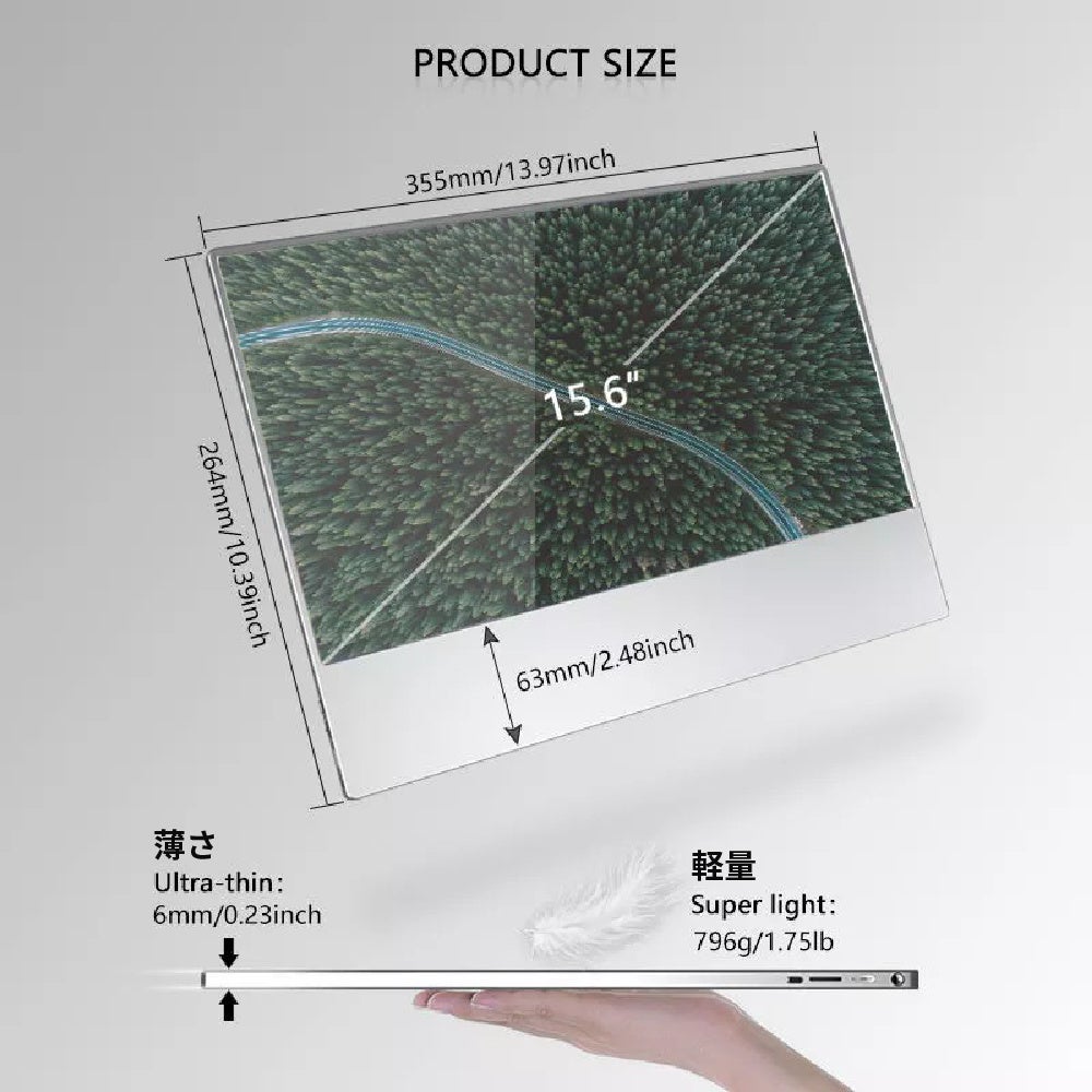 - 15.6インチ画面の軽量設計、多くのデバイス対応