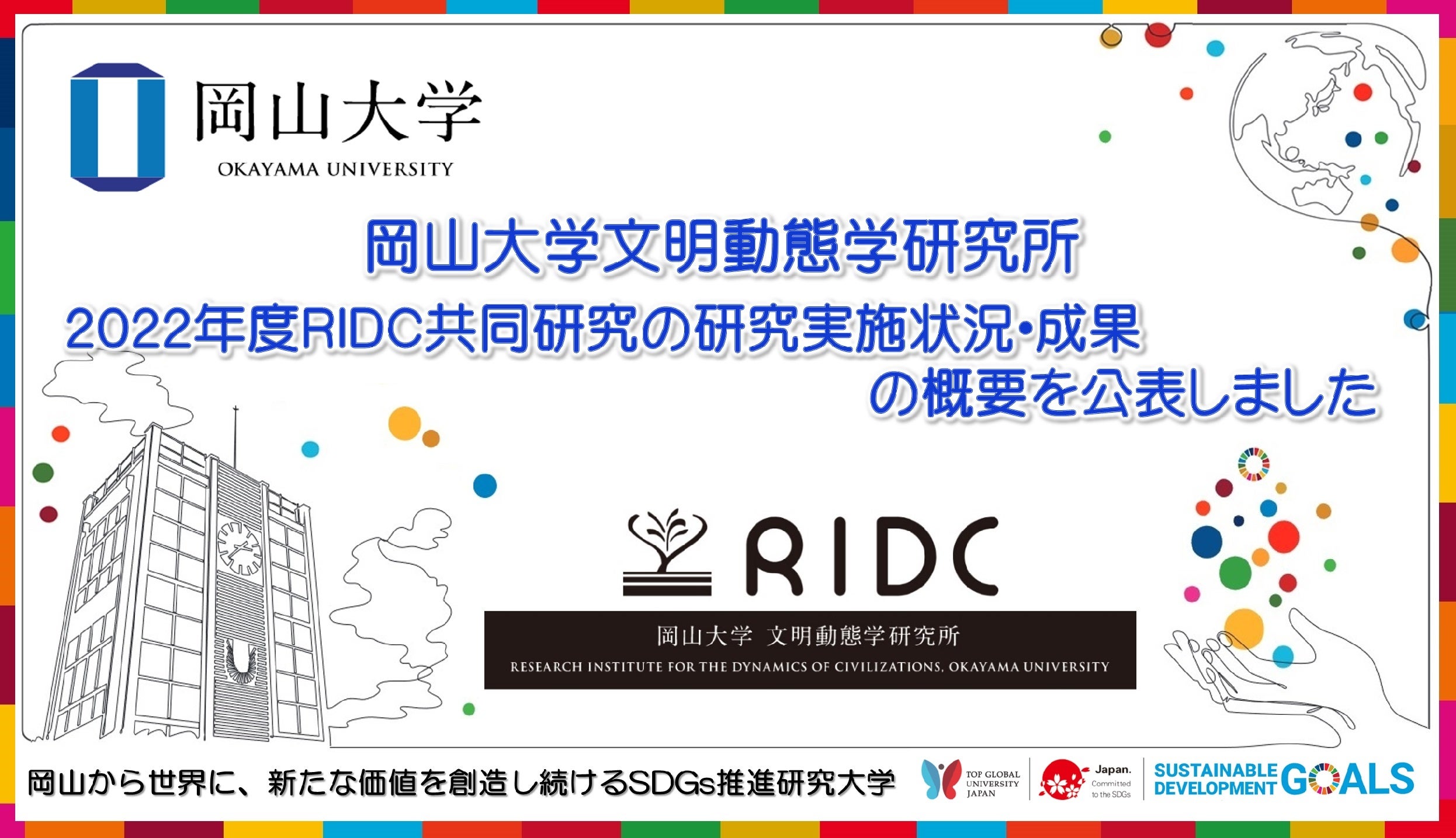 国立大学法人岡山大学(本部:岡山市北区、学長:那須保友)の文明動態学研究所(RIDC)は、2023年4月20日に「2022年度RIDC共同研究の研究実施状況・成果の概要」をホームページで公表しました。