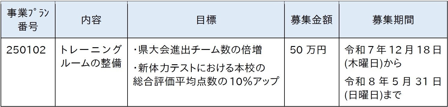 新羽高等学校の創立50周年に向けてトレーニングルームを整備するための寄附募集を開始します