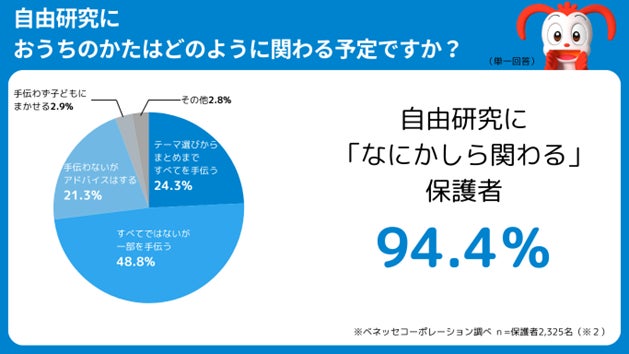 また、自由研究に何らかの形で関わる保護者は94.4%となっており、テーマ決めや完成まで各家庭での大変さが浮き彫りとなりました。「自由研究のテーマ決めやまとめ方で生成AIを使わせたい」と回答する方もいて、夏休みの宿題との向き合い方も徐々に変わりつつあるようです。