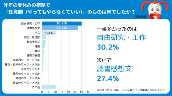 任意制の宿題として「自由研究」が最多。制度自体に保護者は「賛成」69.8%、「反対」30.2%
