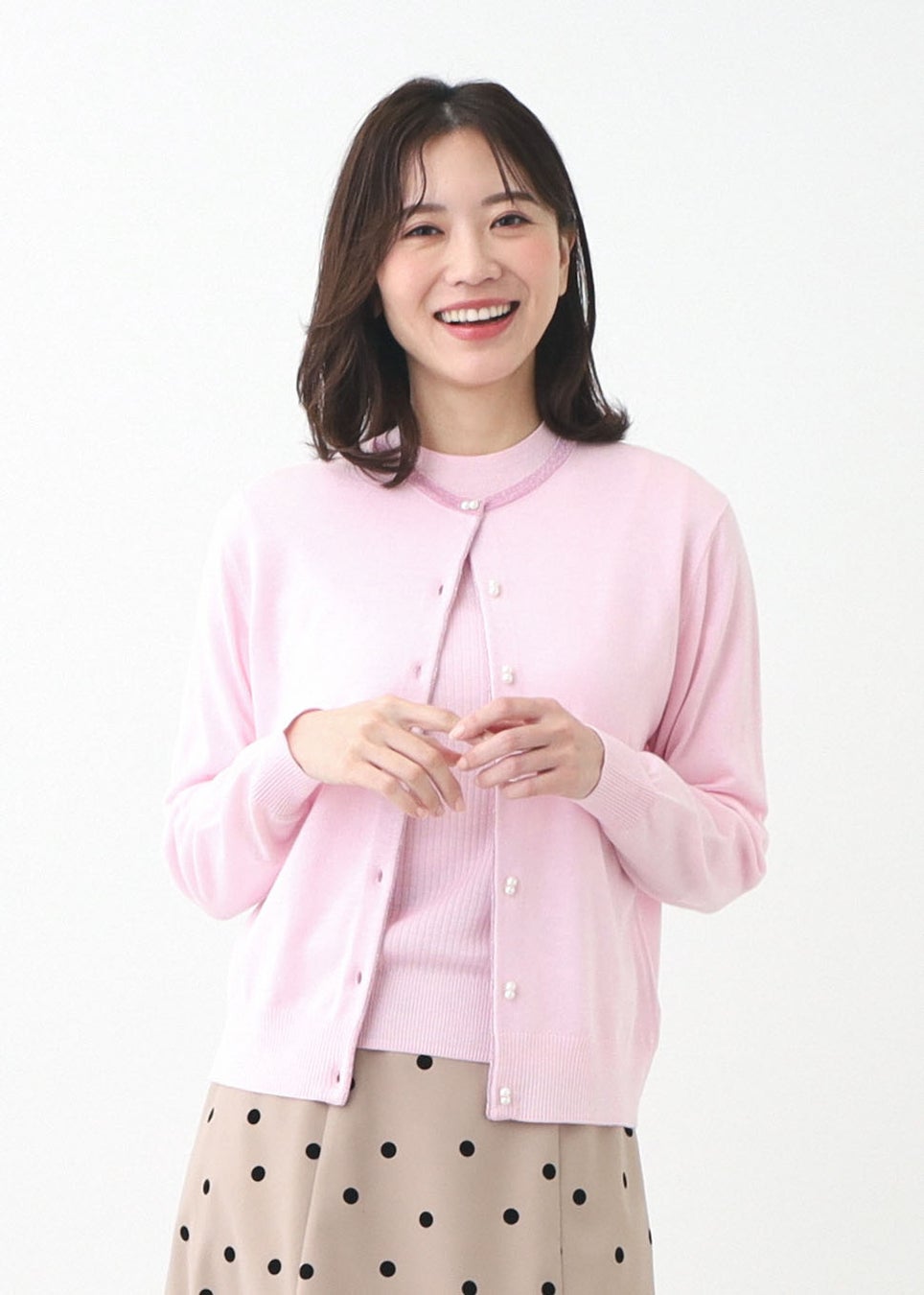 リフレクトが展開する冬アウターと好相性の春めくカラーとプライスが嬉しい「Happyアイテム」は、フェミニンなディテールが魅力のアンサンブルニットやドット柄スカート、やわらかな素材感のリラクシーな着心地のニットなど新春の気分が盛り上がるラインナップです。