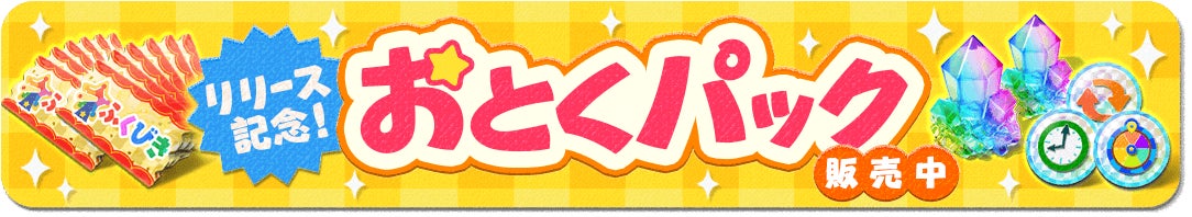 サービス開始を記念して、ゲーム内アイテムがお得に購入できる「おとくパック」を販売しています。「おとくパック」では、次の島に行くために必要な「とらべるストーン」や、パズルを有利に進めることができる「パズルスキル」、「ふくびきチケット」がセットになっています。「スタールビー」を使って「アイテムショップ」で購入することができますので、ぜひご利用ください。