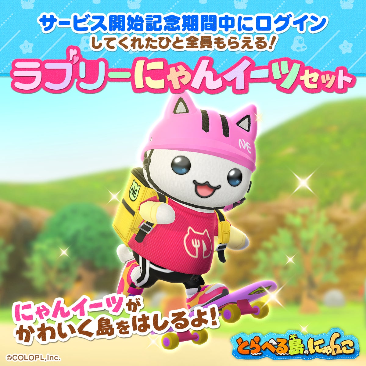 この「いしょう」を着たにゃんこは、スケートボードに乗って島中を走りまわる姿を見せてくれますので、ぜひゲームをダウンロードして手に入れてください!