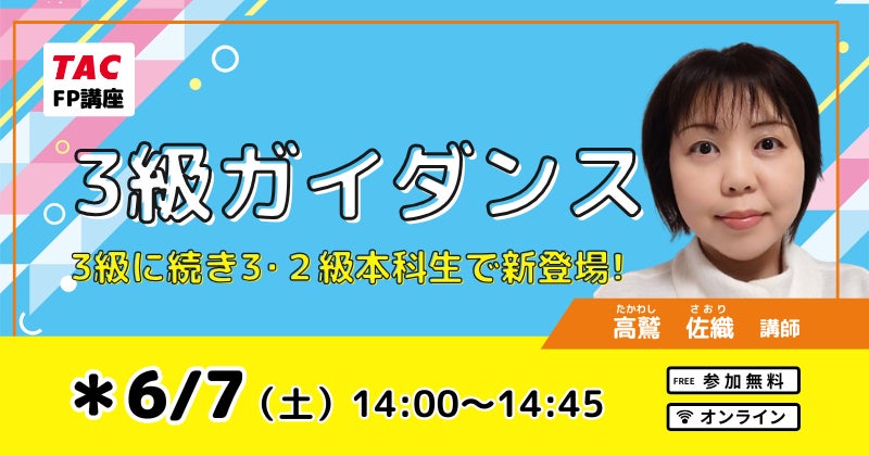 【TAC】FP資格初学者向け!6/7(土)無料ガイダンス実施