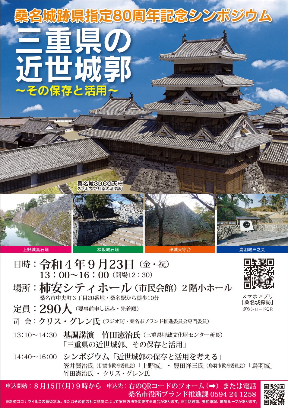 桑名市は三重県内の城郭の保存と活用について語り合うシンポジウムを2022年9月23日(金・祝)に開催する。