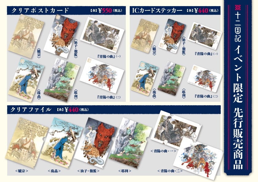 「十二国記」POP UP STORE開催店舗にてクリアファイル・クリアポストカード・ICカードステッカーの新柄が先行販売となります。