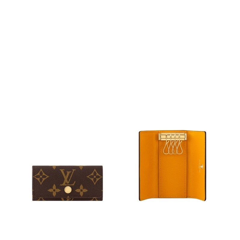 ルイ·ヴィトンのアイコニックなモノグラム·キャンバスに鮮やかな色合いのレザーでライニングを施した「ミュルティクレ 4」。折り畳むとバッグやポケットにすっきりと収まる、普段使いに欠かせないアクセサリーです。開くと内側には4つのメタル製のキーフックを備えています。フラップにはゴールドカラーのスナップボタンをあしらいました。