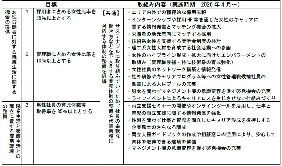 ○また、女性活躍推進法および次世代育成支援対策推進法に基づく、新たな一般事業主行動計画を策定しました。