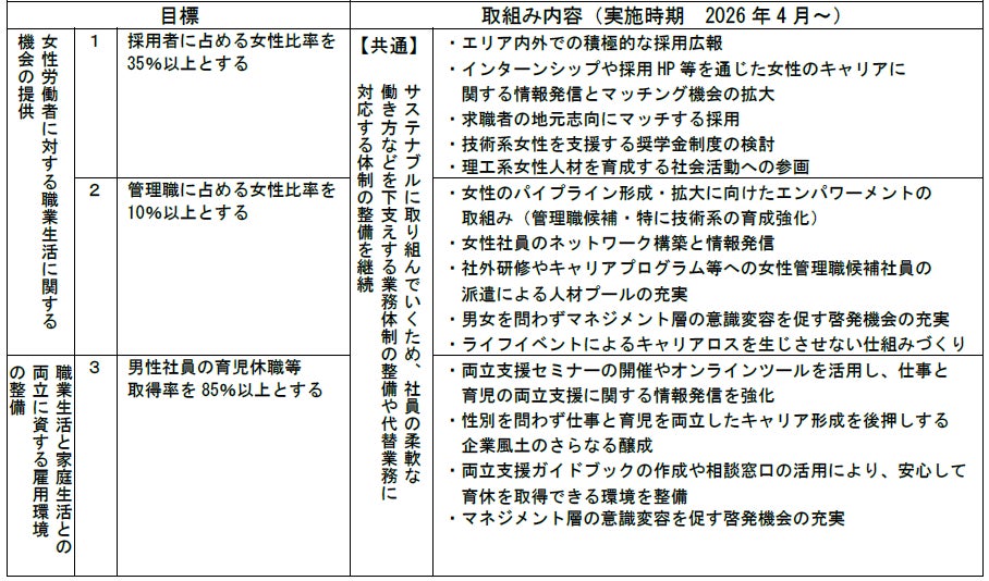 これまで当社では、女性活躍推進法と次世代育成支援対策推進法の一体型として一般事業主行動計画を策定してきました。新たな行動計画を策定するにあたり、一体型から個別型の計画へ変更することで、女性活躍及び次世代育成支援それぞれにおける課題とターゲットを明確化し、より効果的な取組みを行ってまいります。