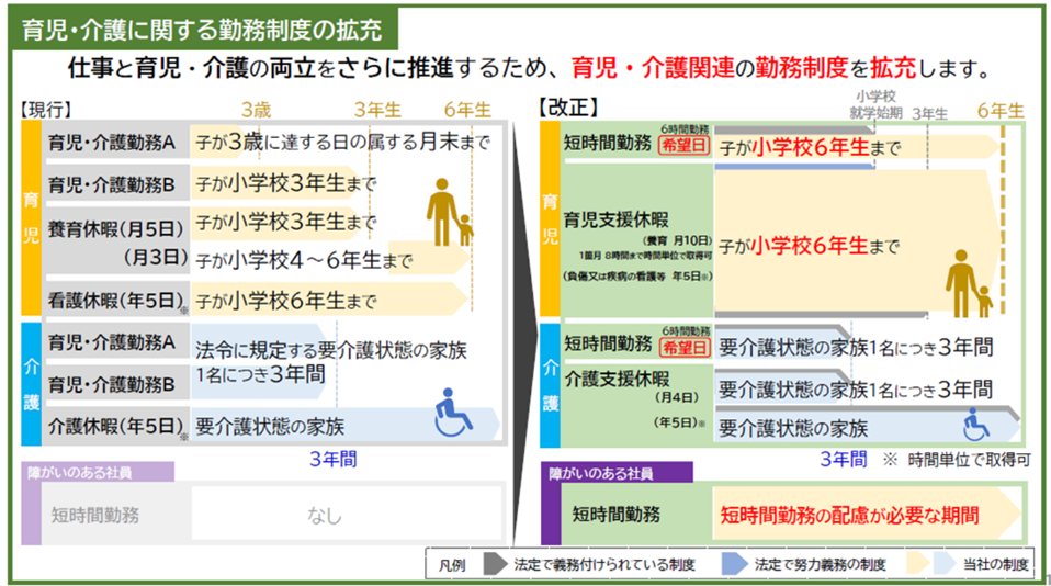 育児・介護休業法等の改正を契機として就業規則を改正。