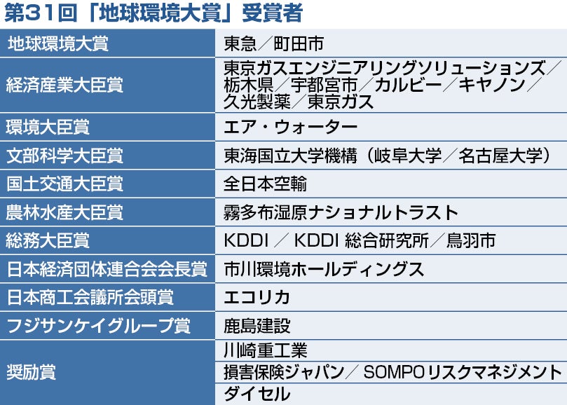 東急、町田市がグランプリ 第31回「地球環境大賞」 4月17日授賞式