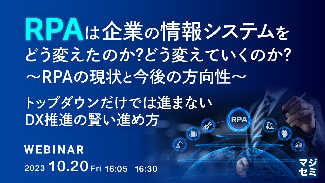 『RPAは企業の情報システムをどう変えたのか?どう変えていくのか?~RPAの現状と今後の方向性~ トップダウンだけでは進まないDX推進の賢い進め方』というテーマのウェビナーを開催