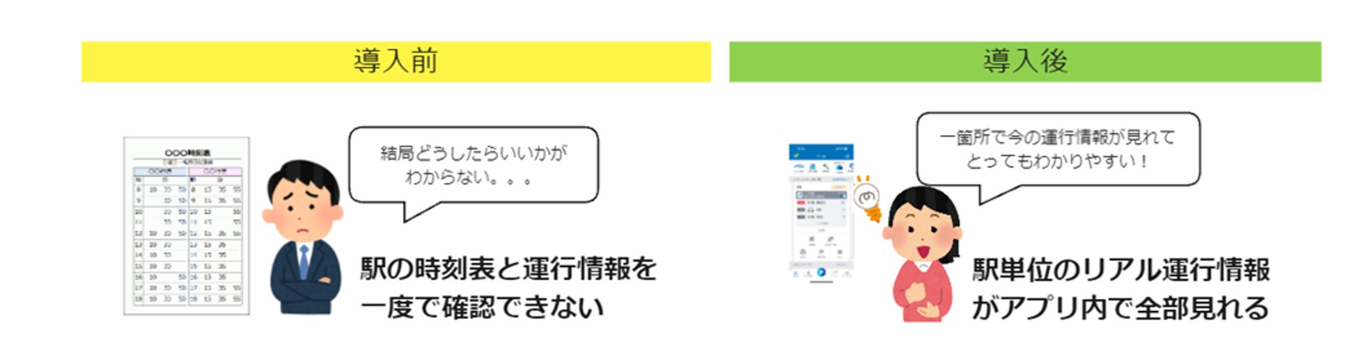この機能により、一気通貫でタイムリーな運行状況が駅単位で時刻表も含めて確認できるようになります。
