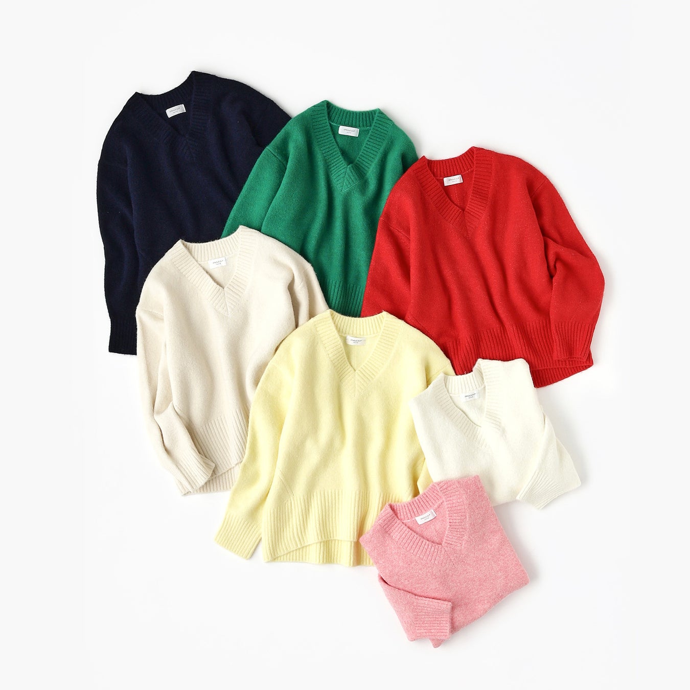 ふわふわの質感とトレンド感のあるVネックデザインが魅力の『ラッキーカラーニット』は、バリエーション豊富に全7色をラインナップ。
