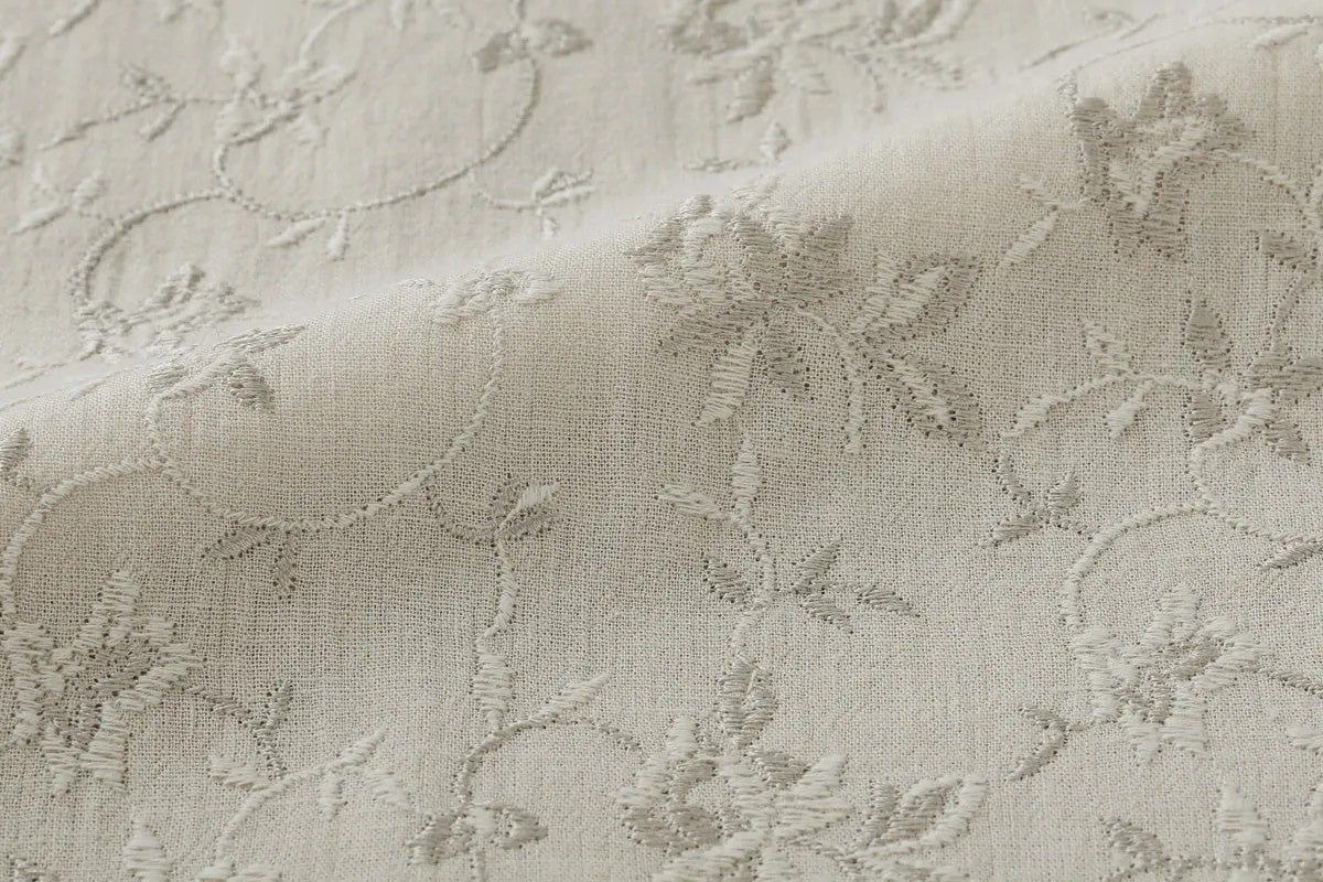 今季一押しアイテム「Embroidery Flower」糸のコントラストが生み出す、繊細で美しい花刺繍が完成しました。細部までこだわった生地の魅力を、コーディネートと共にご紹介します。