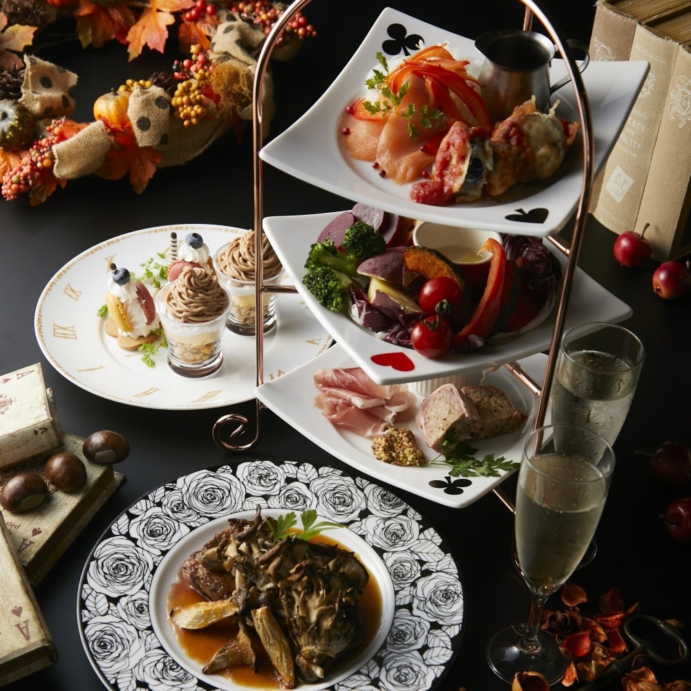 ちょっぴり贅沢なディナータイム限定のパーティスタンドも見逃せない、幻想の国のお茶会を心ゆくまでお楽しみください。