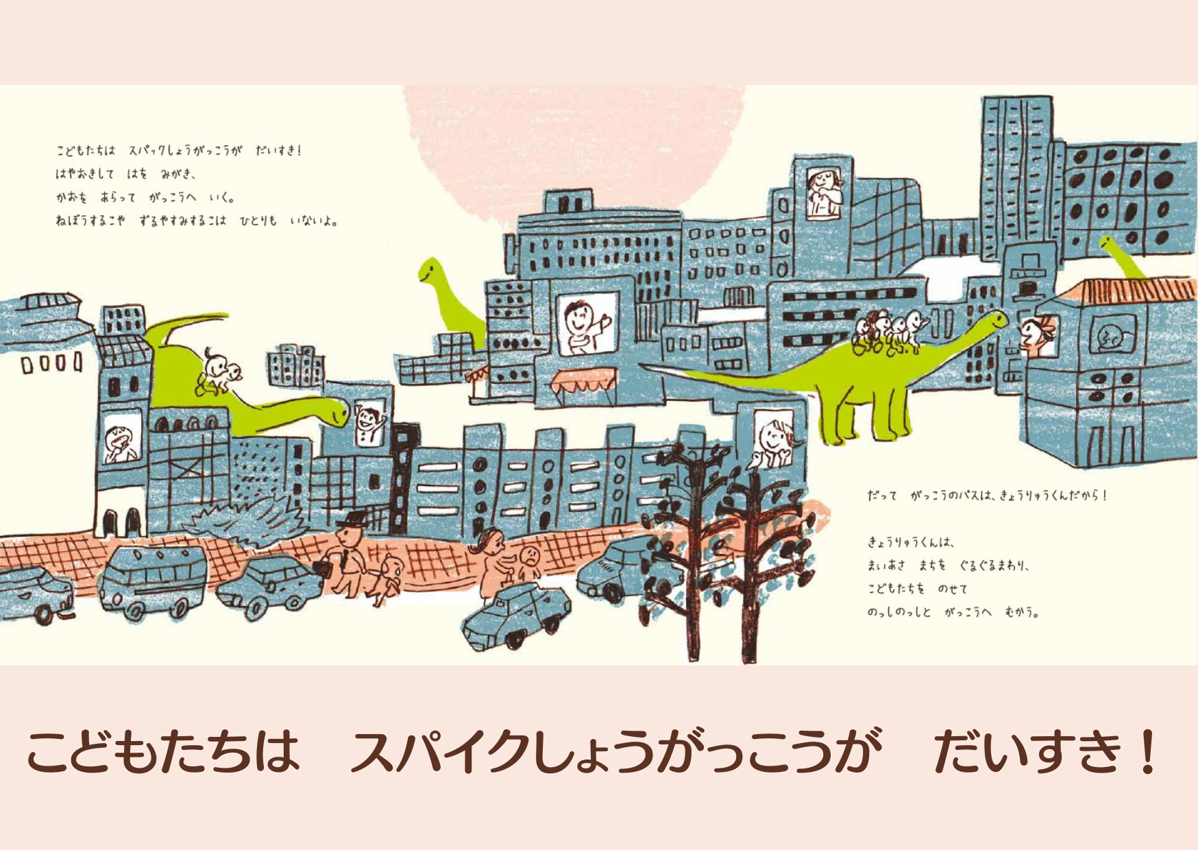 スパック小学校のバスは、なんと きょうりゅうくん!