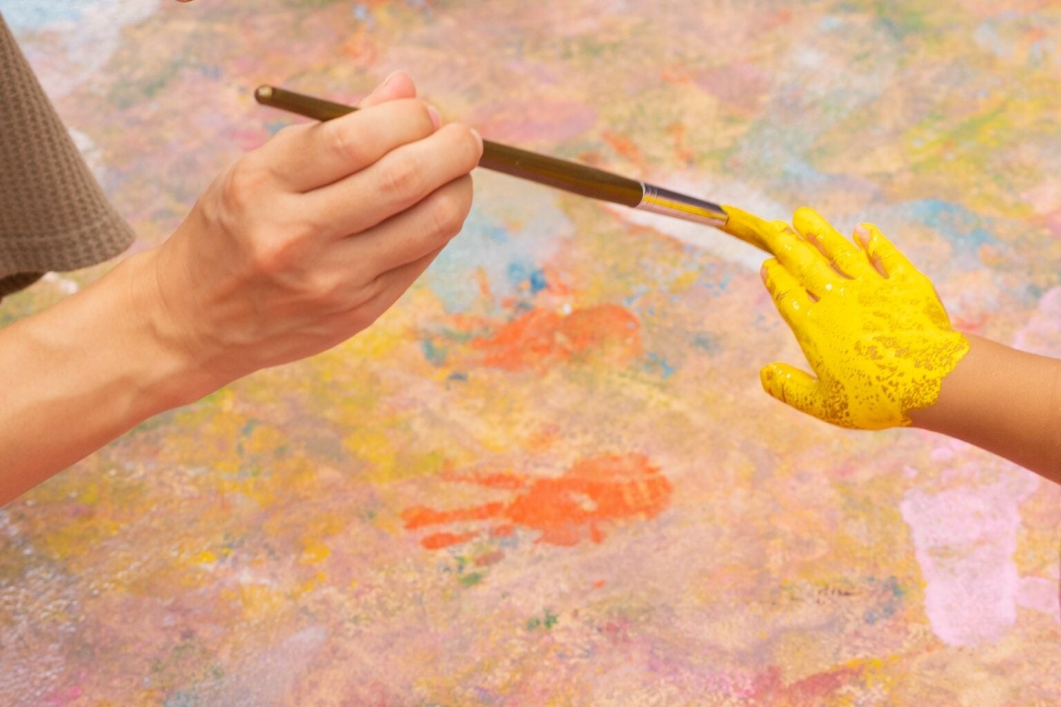 ワークショップ「この材料でなにできる? 材料:えのぐがついたかみ」