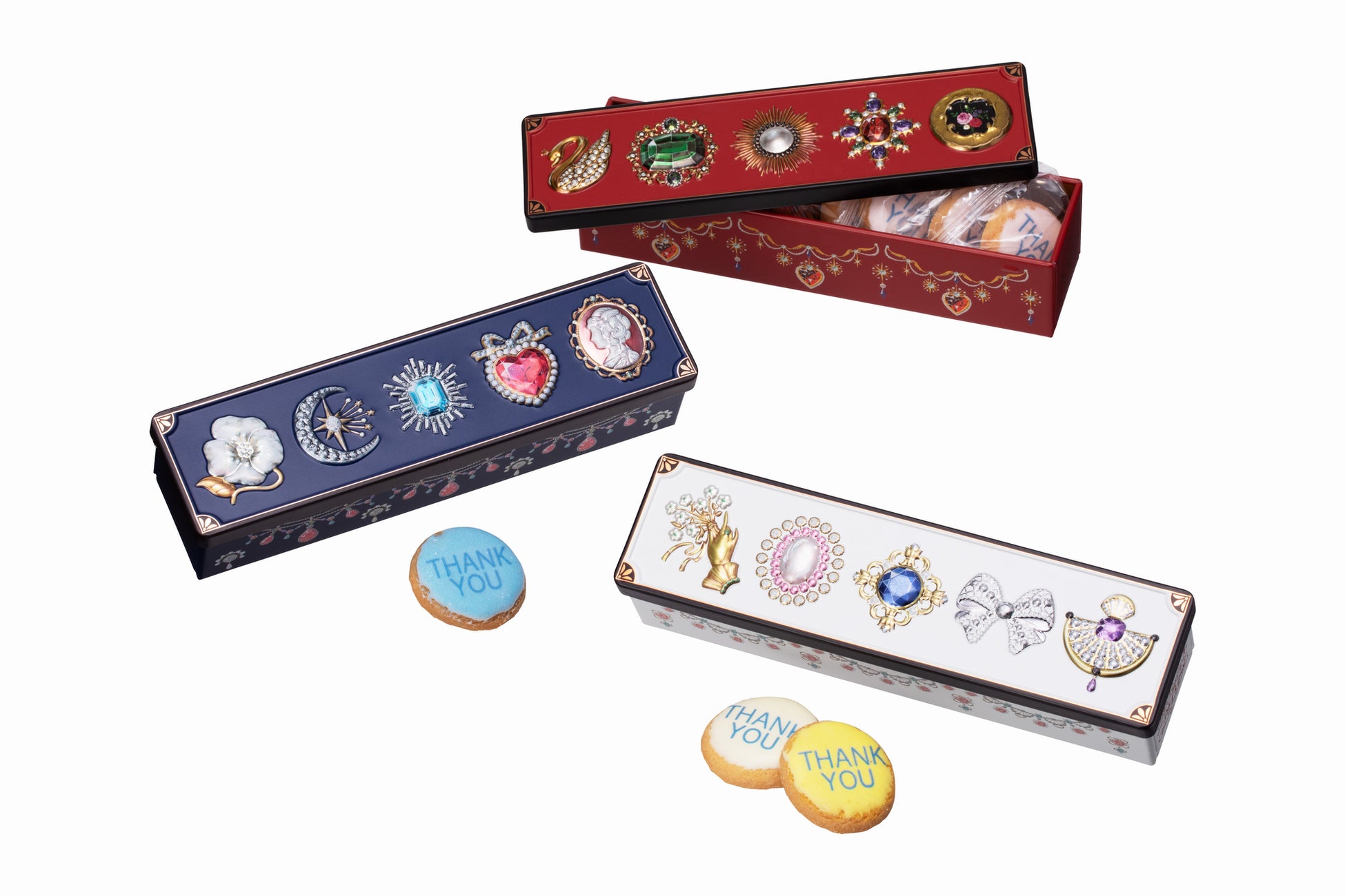 食べた後も飾っておきたくなるような上品なデザインの缶に入った、「THANK YOU」の文字入りのアイシングクッキー。