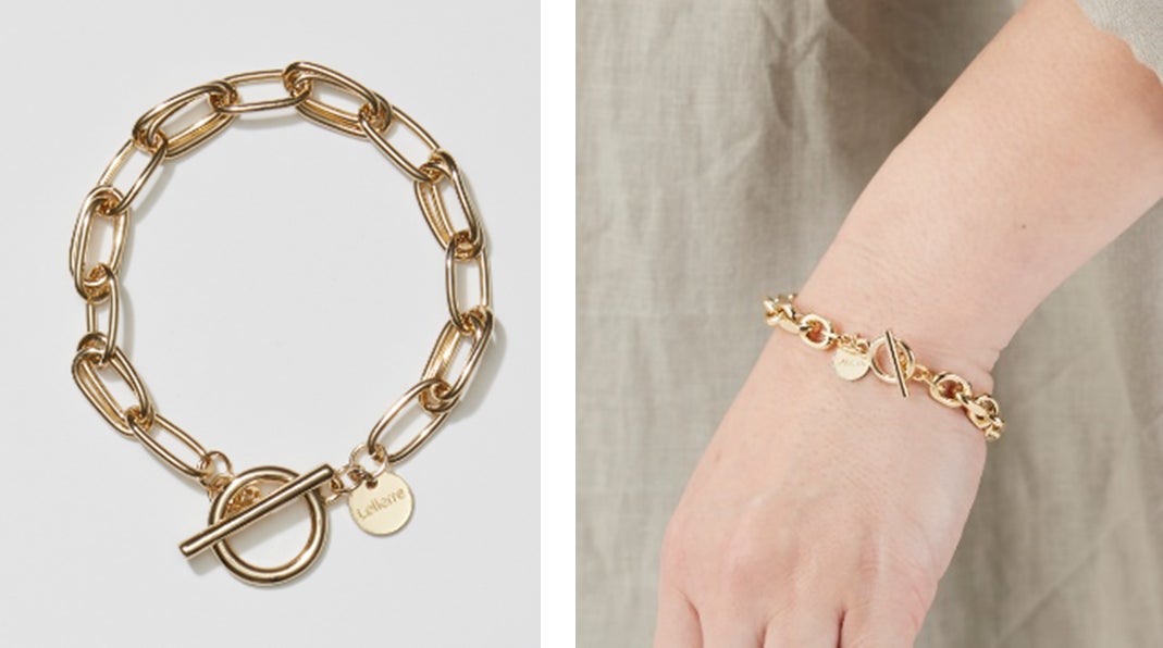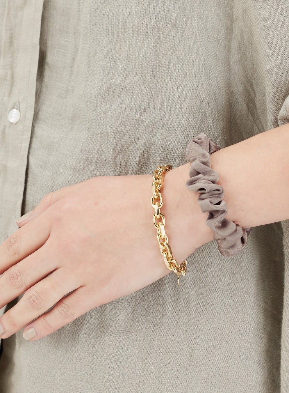 今期トレンドのチェーンブレスレット。太すぎず、主張しすぎないデザインとなっており、これ1つで今年らしさがプラスできる商品です。ヘアゴムやミニシュシュとの重ね付けもおすすめです。