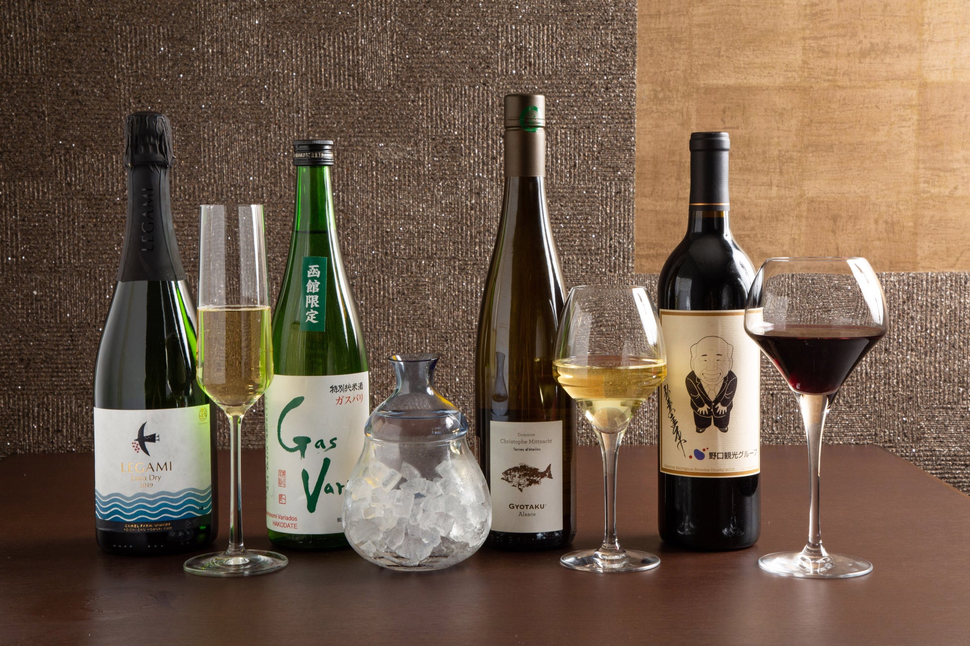 創作料理を盛り込んだ当館の寿司会席はワインとも相性抜群。
