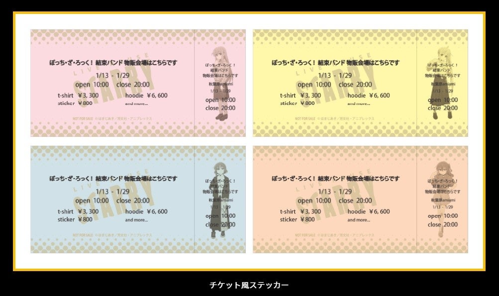 『ぼっち・ざ・ろっく! 結束バンド 物販会場はこちらです』が、「あみあみ」にて開催決定。描き下ろしイラストを使用したグッズや、購入特典として「ライブチケット風ステッカー」も登場。