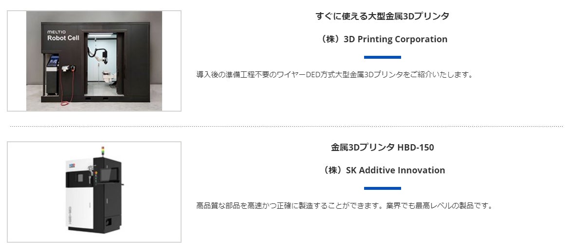 金属・樹脂3Dプリンタが一堂に、展示会場では実機を展示予定。